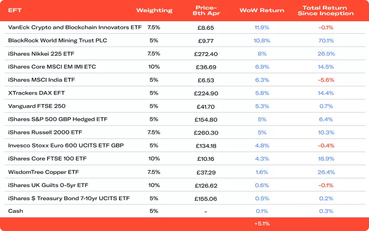 | ETF | Wt | Price | WoW | Since |